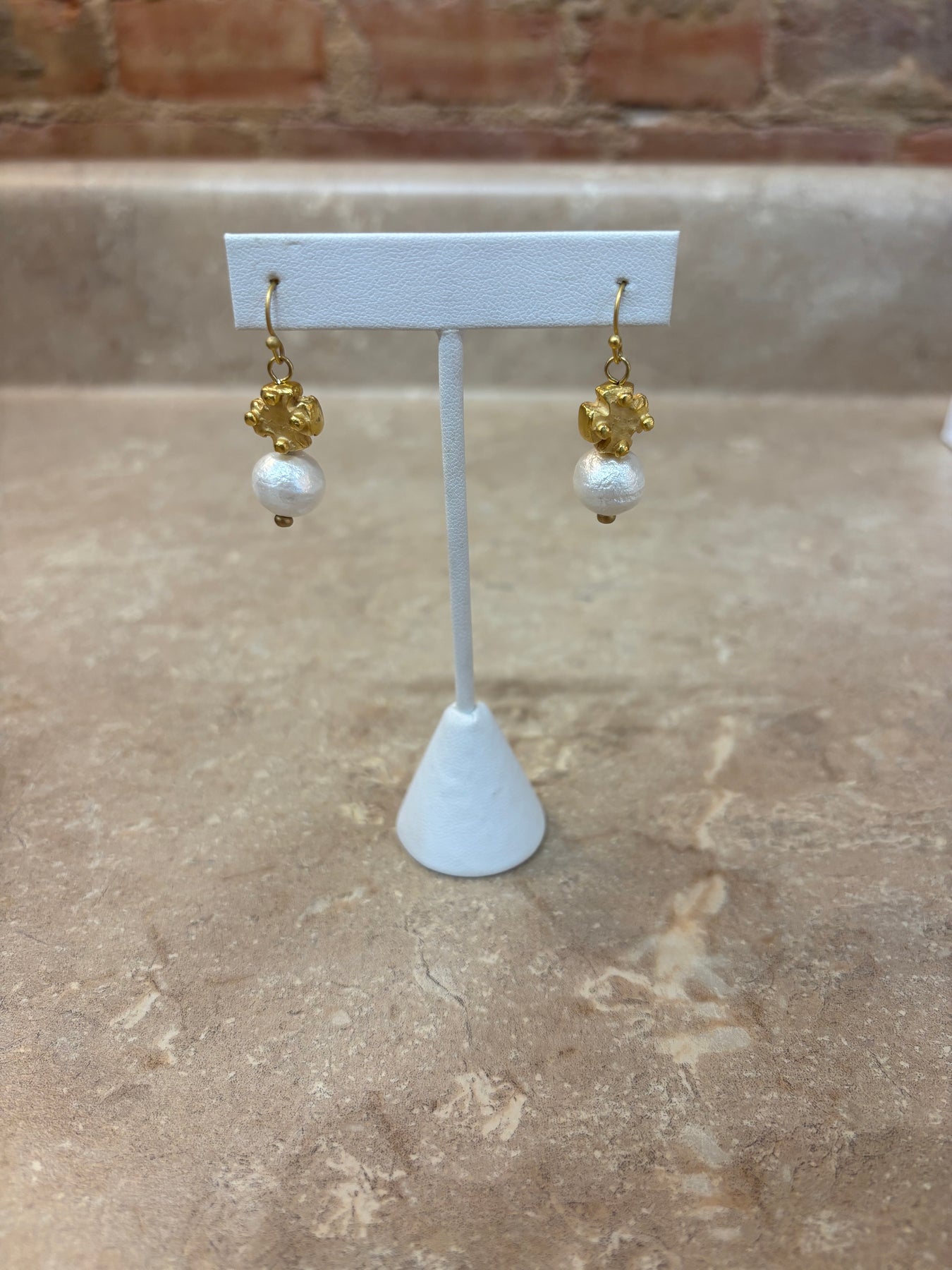 Susan Shaw Gold Cross + Pearl Earring