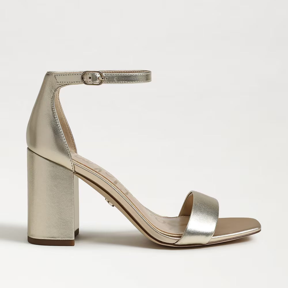 Sam Edelman Daniella Block Heel Sandal in Gold Metallic Leather