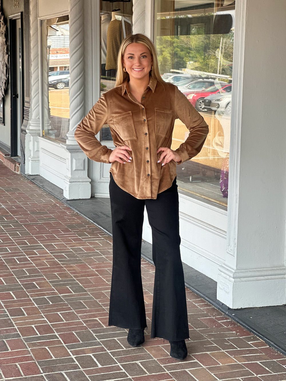 Dylan Cate Jude Rib Long Sleeve Crewneck in Taupe