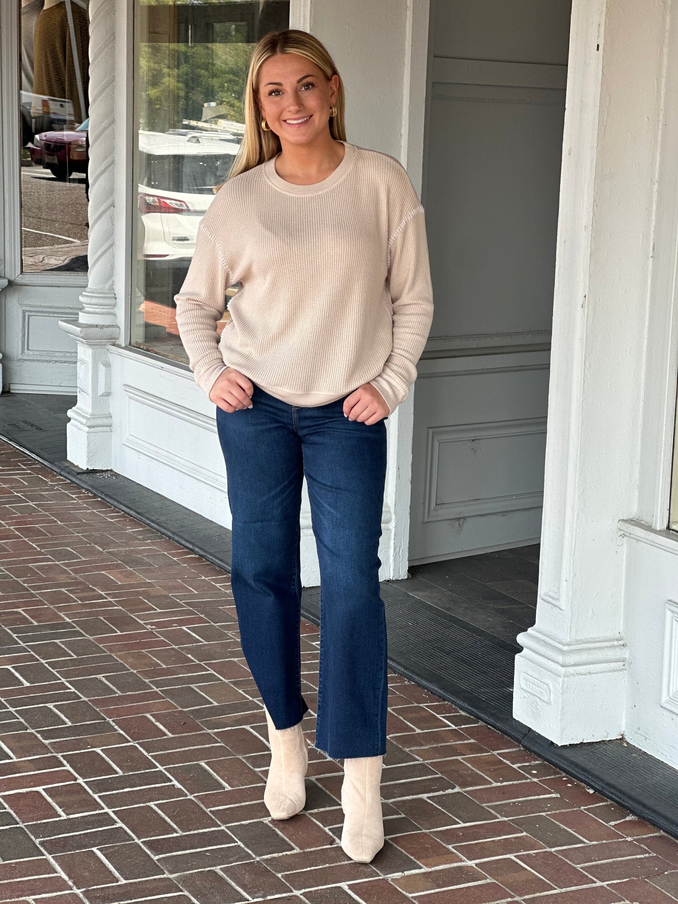 Dylan Blanket Stitch Sweatshirt in Beige F1W32BBW