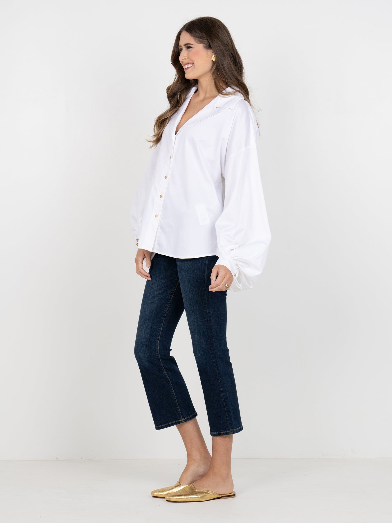 Emily Mccarthy Iris Oxford in White Cotton Poplin