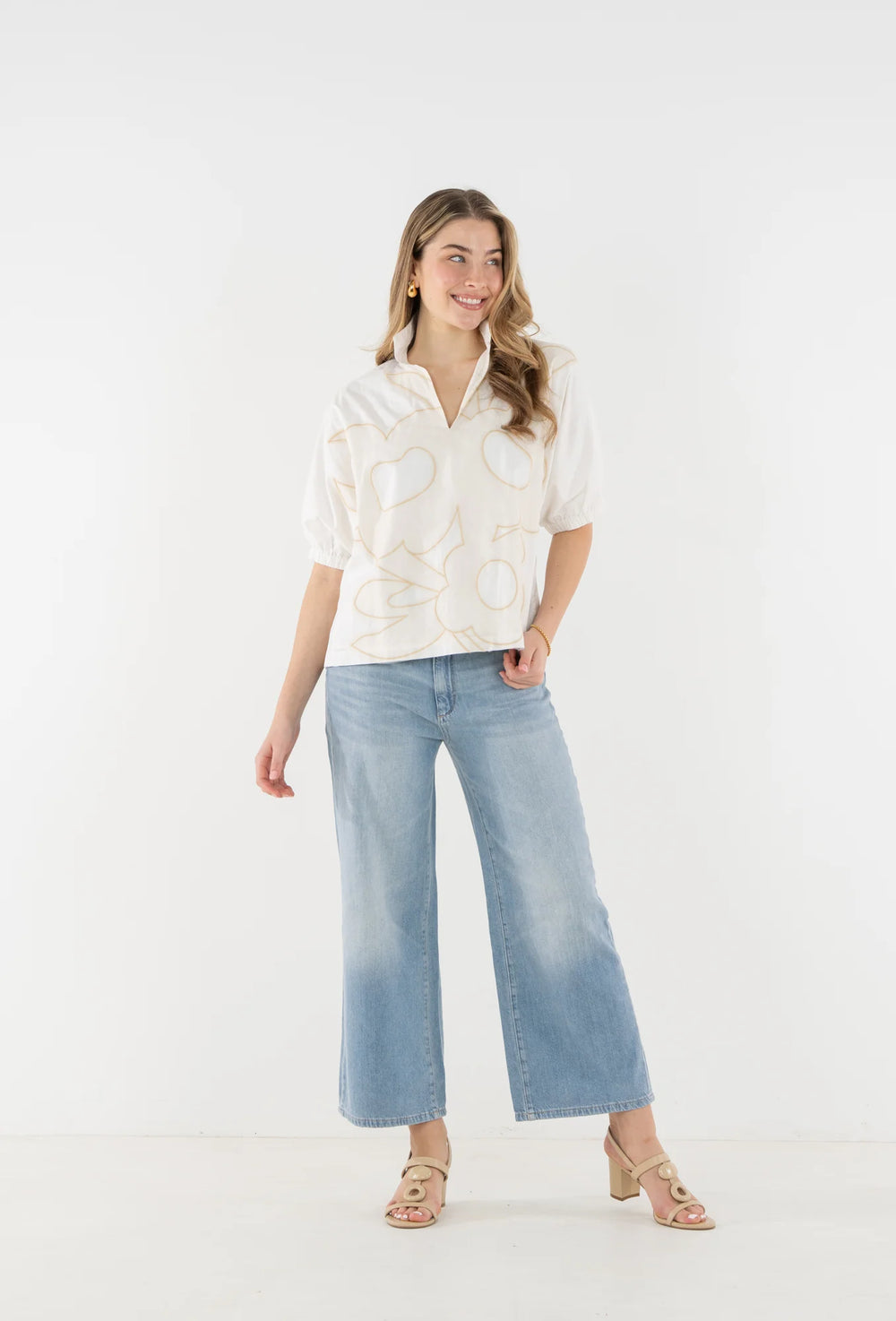 Emily Mccarthy Long Sleeve Poppy Top in Denim Chambray