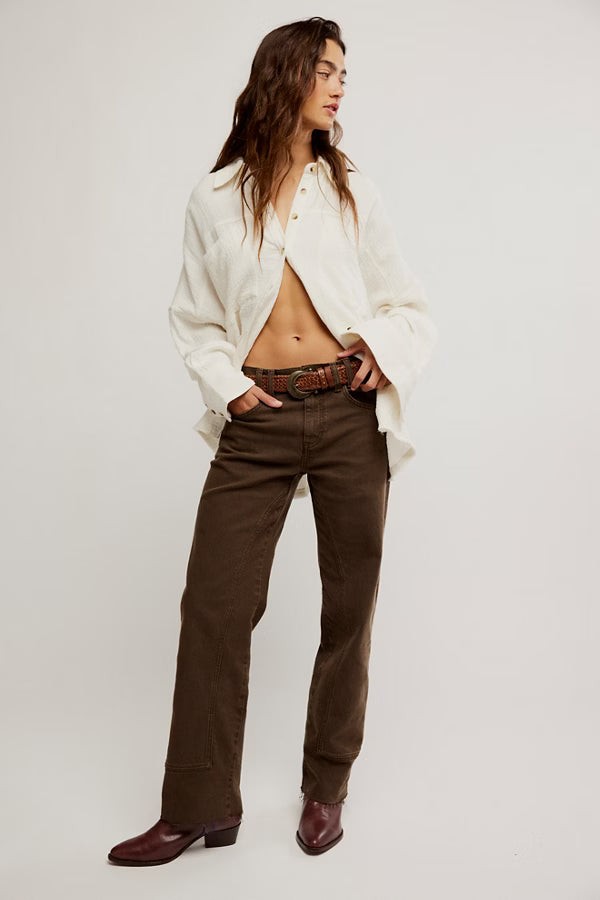 Free People Risk Taker Mid-Rise Jean in Workwear Brown