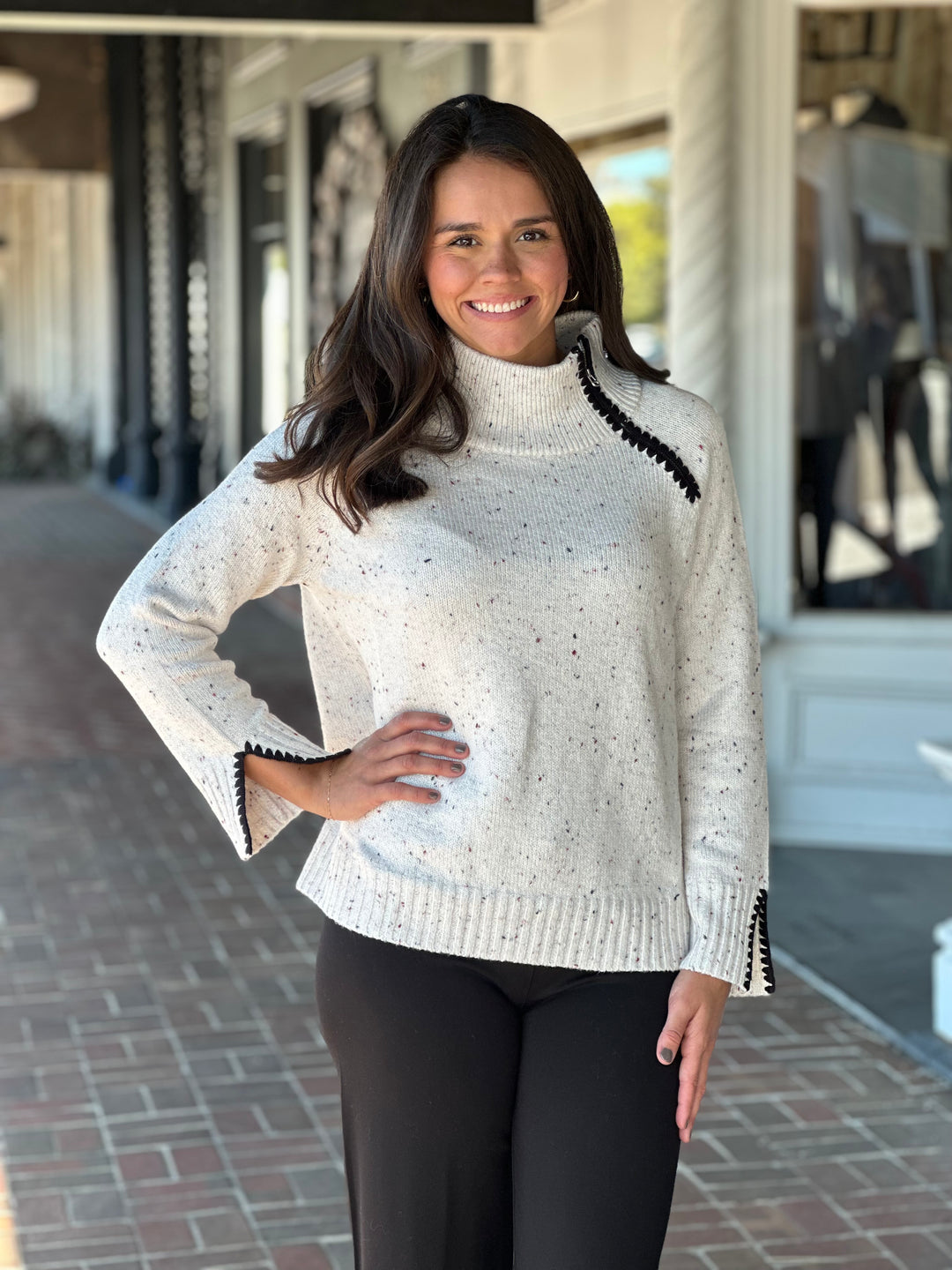 Habitat Harvest Tweed Zip Neck Winter White Sweater