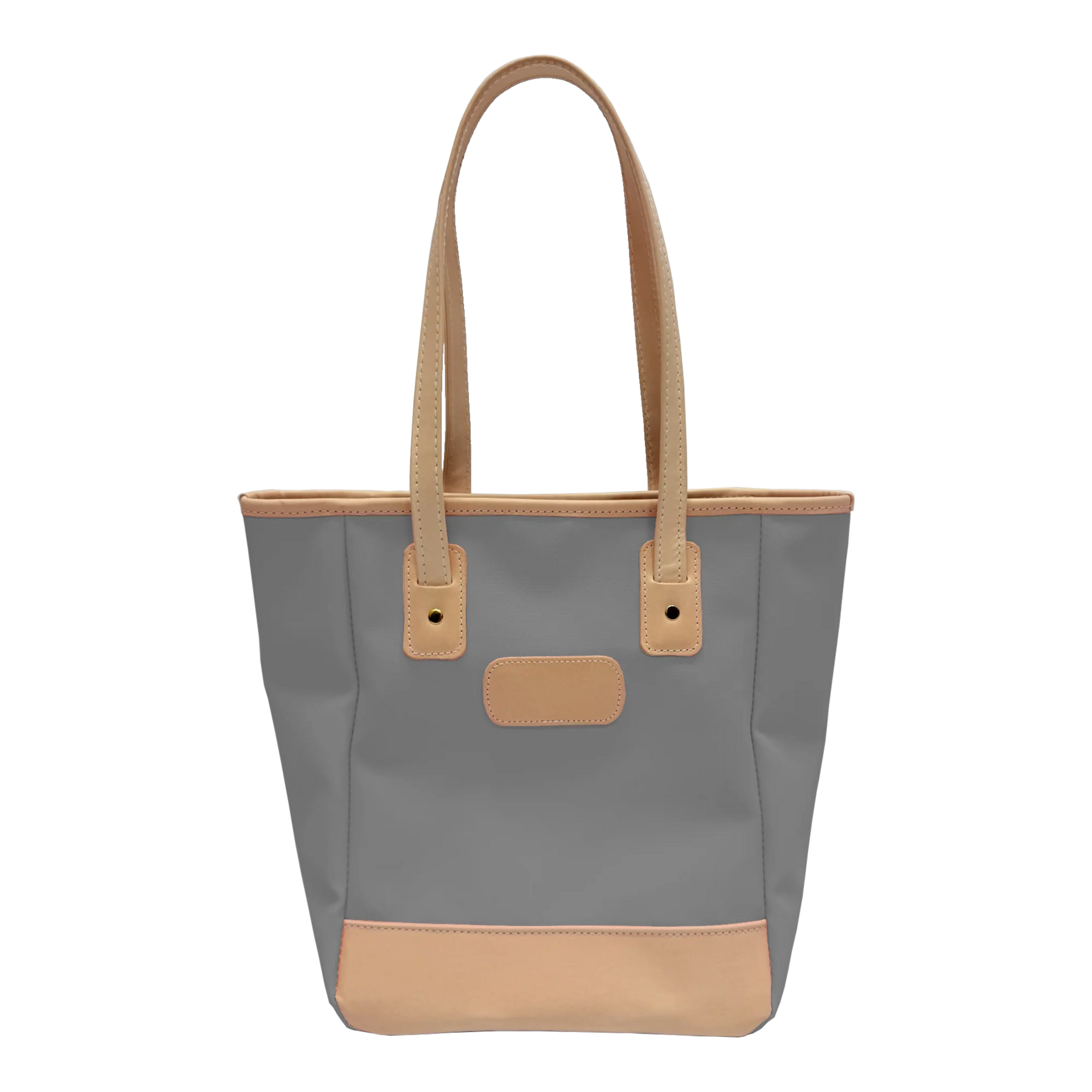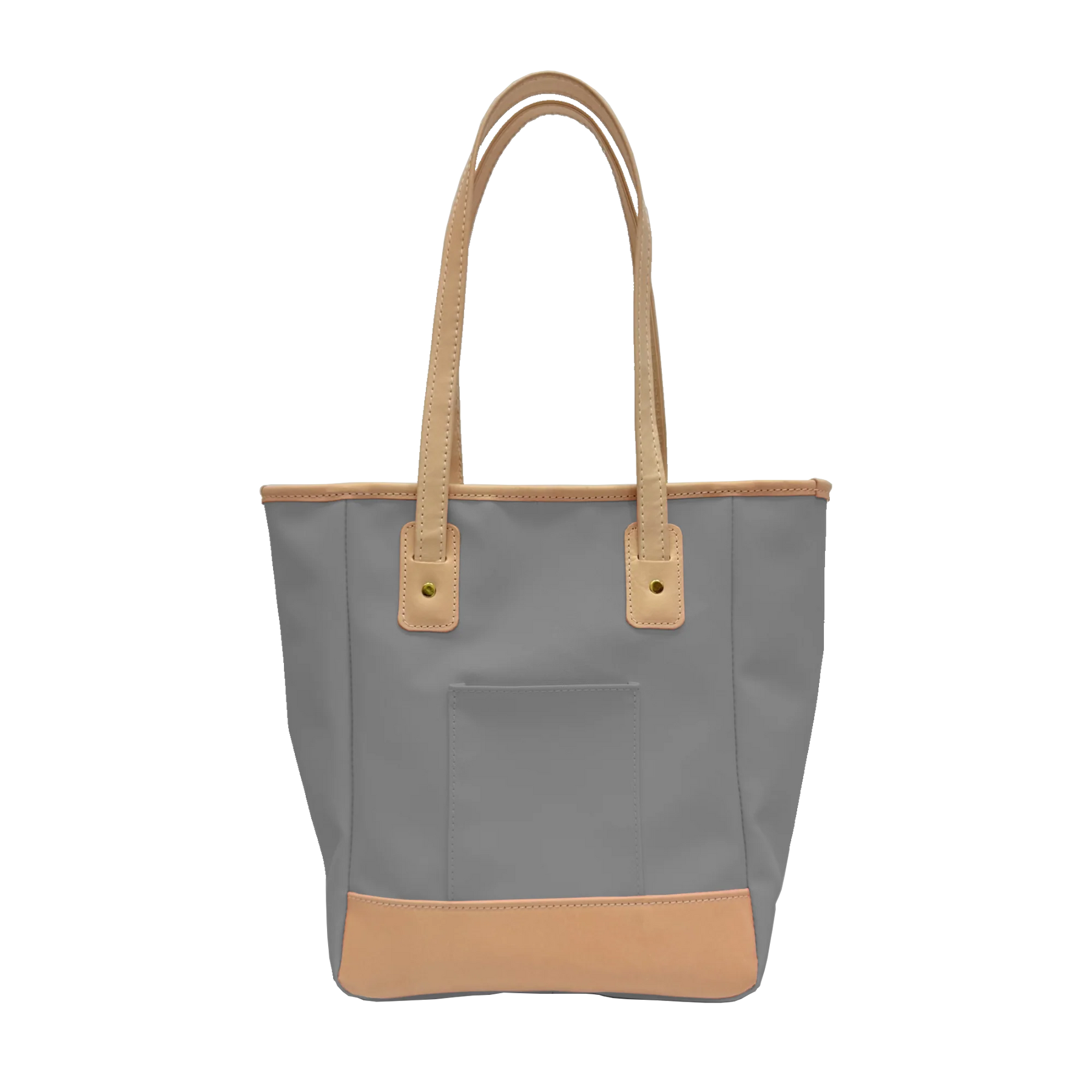 A simple yet classy looking small tote or large purse with a handy outside pocket for a cell phone, keys, or other often-used items. Also includes four open and one zippered inside pockets.