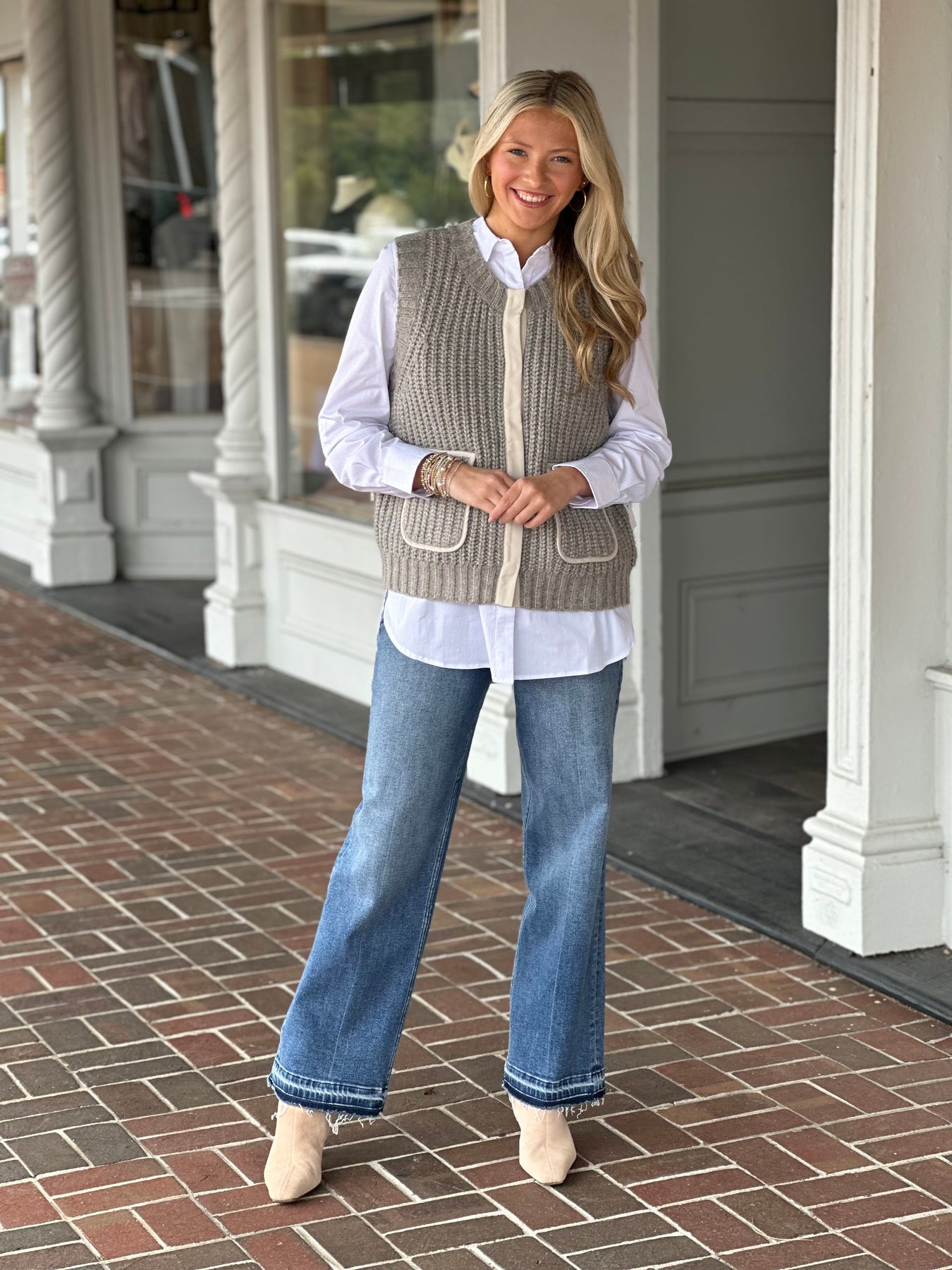 Tribal Sleeveless Pocket Sweater Vest in Sandstone