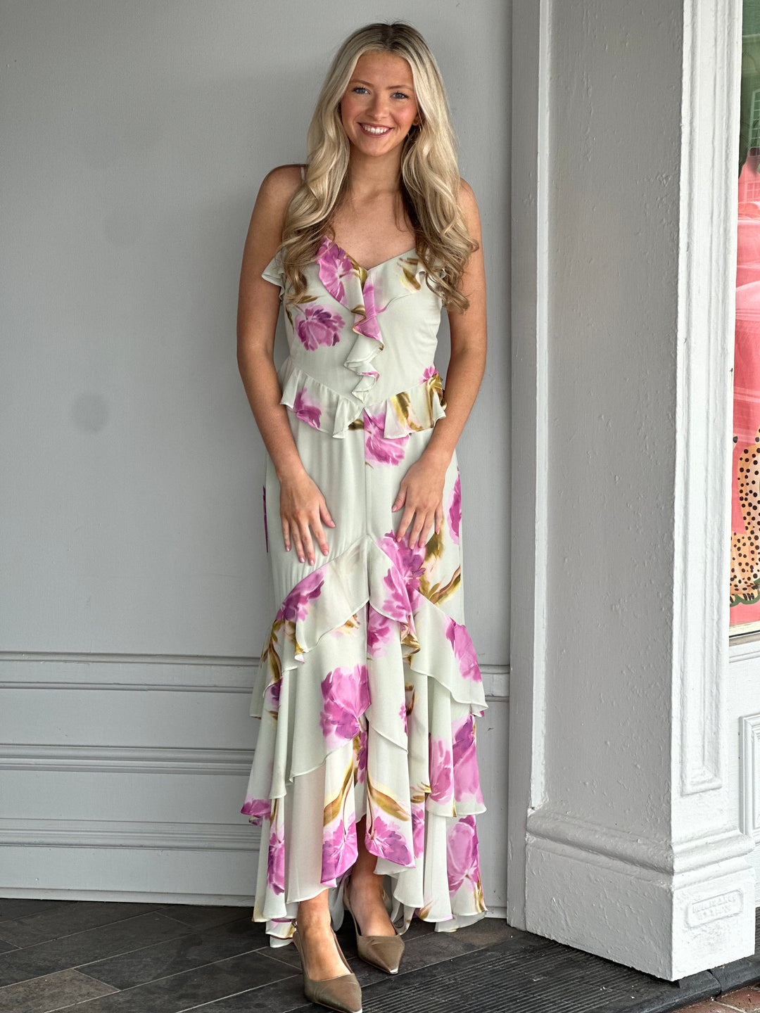 Steve Madden Ciara Floral Print Ruffle Dress in English Rose