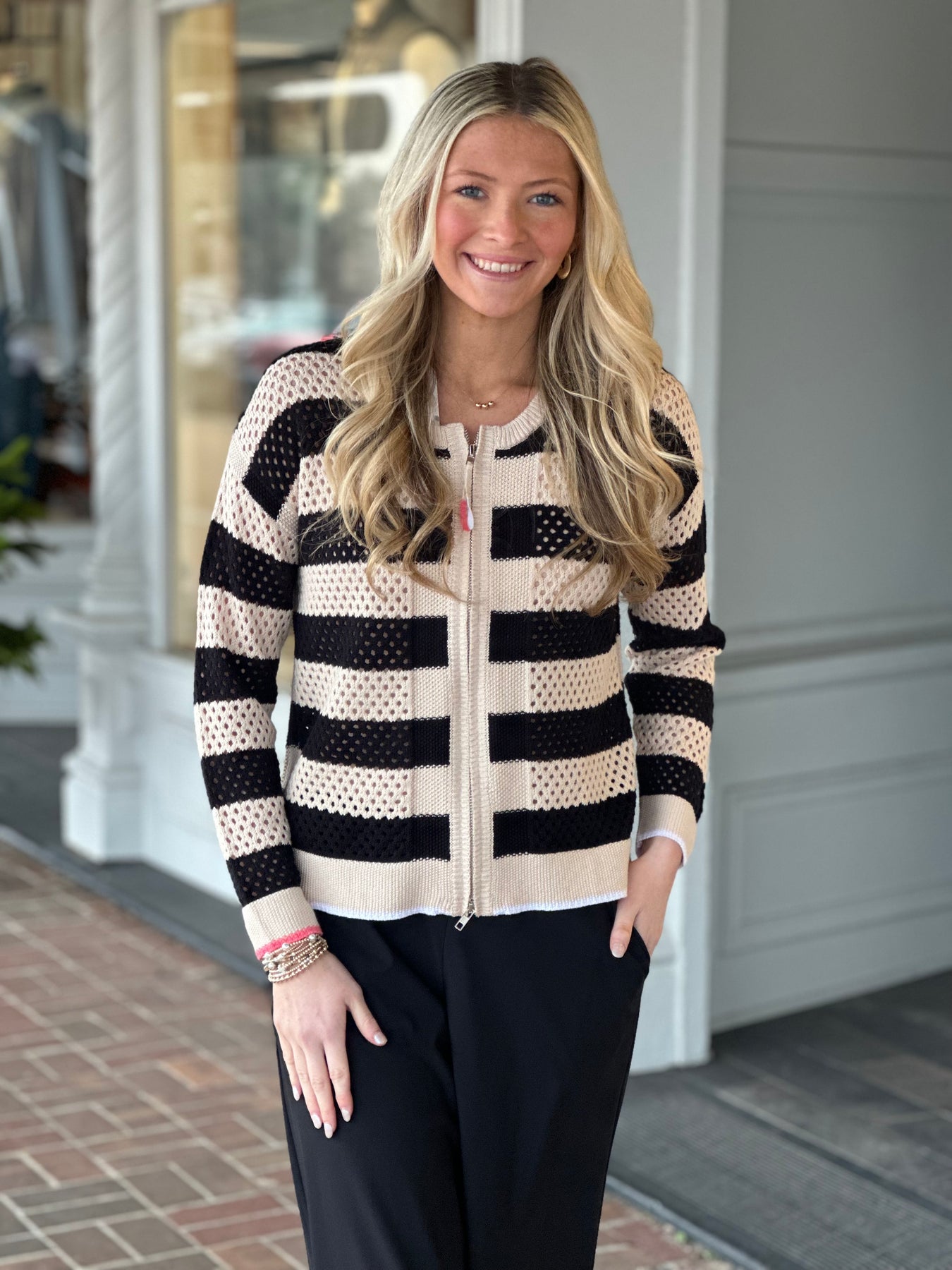 Spring Black Stripe Canvas Zip Cardigan ZP418