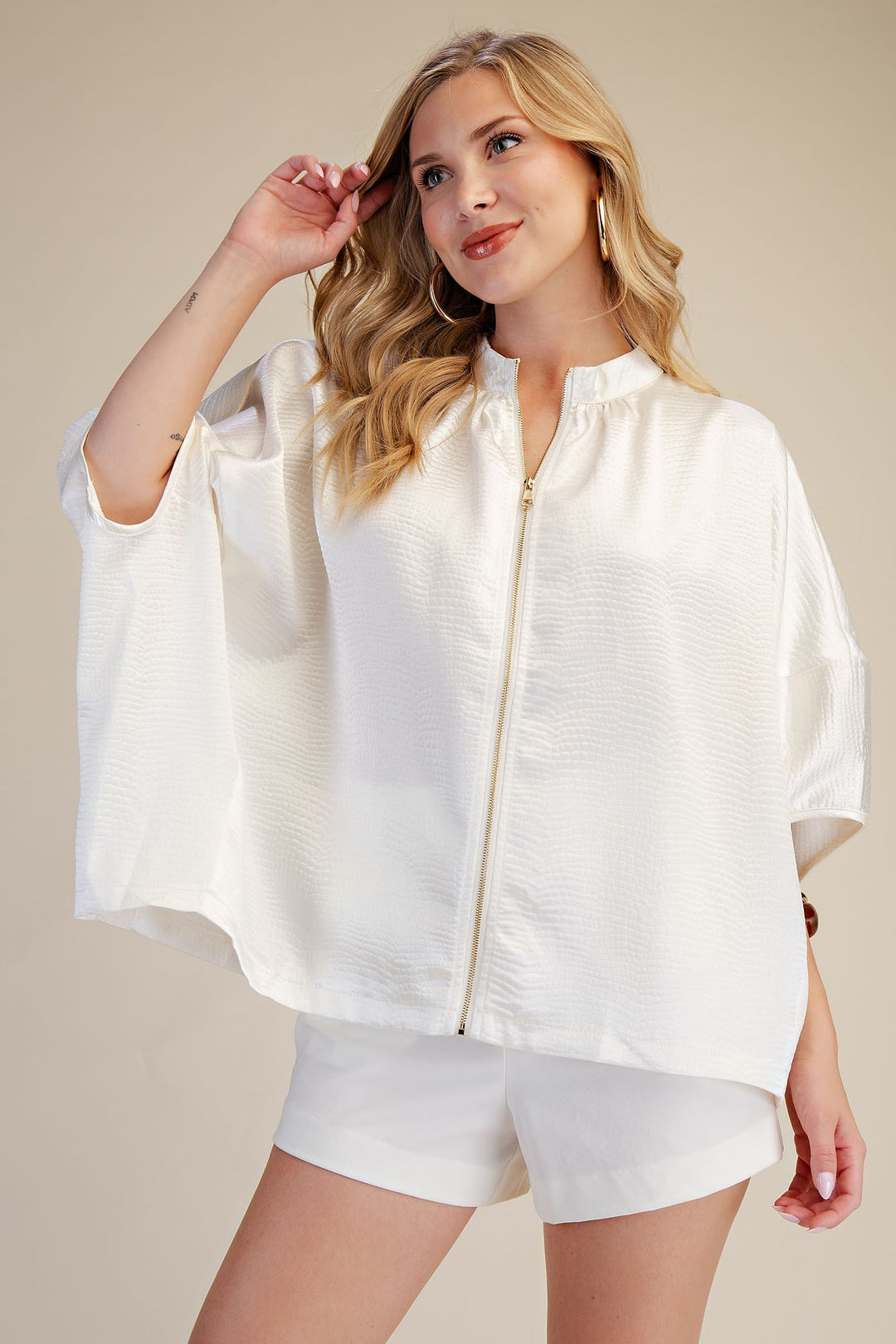 Front Zip Sweater in Beige