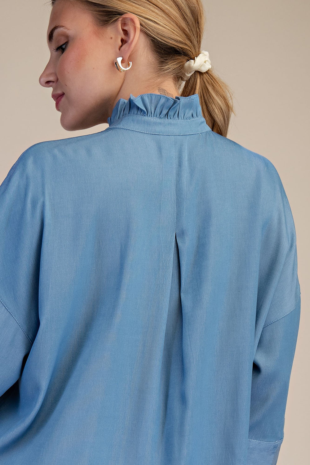 Split Neck Top in Steel Blue