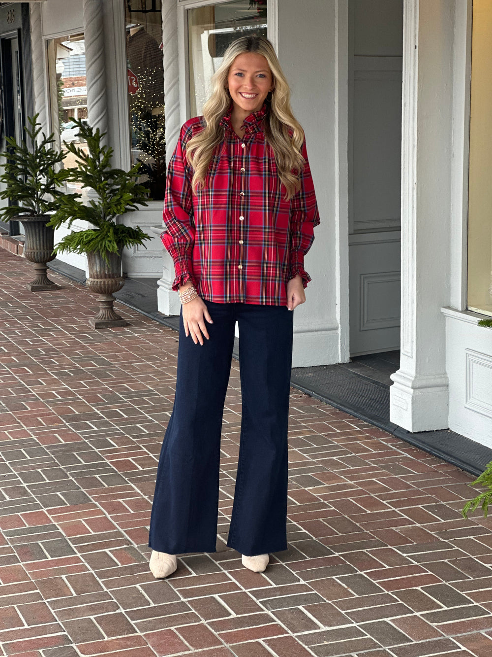 The Frau Blouse in crisp cotton is back and ready to shine! With gleaming gold buttons and a flirty ruffle collar, it brings a fun update to a timeless style. Elastic cuffs let you create a fuller sleeve look whenever you like. This top delivers charm and ease without asking for anything in return.